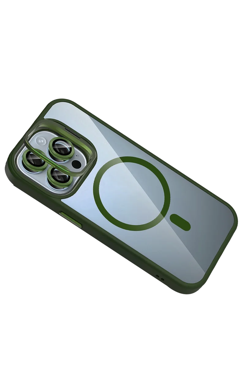 Joko Apple iPhone 15 Pro Max Remim Lensli Magsafe Standlı Kapak - Koyu Yeşil