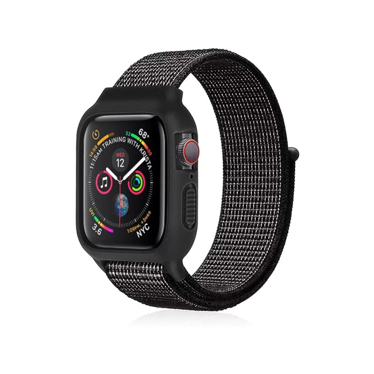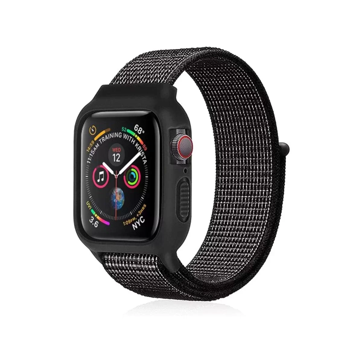 Newface Apple Watch 38mm Hasırlı Cırtcırtlı Kasalı Kordon - Benekli Siyah