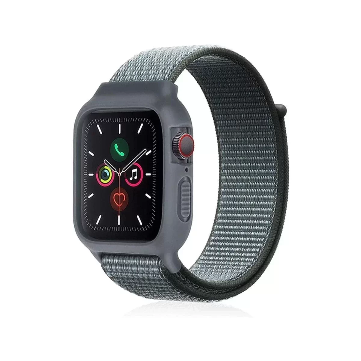 Newface Apple Watch 38mm Hasırlı Cırtcırtlı Kasalı Kordon - Gri-Turkuaz