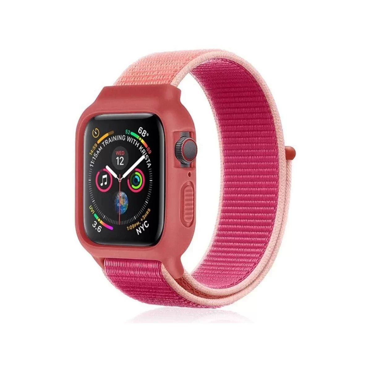 Newface Apple Watch 38mm Hasırlı Cırtcırtlı Kasalı Kordon - Pudra