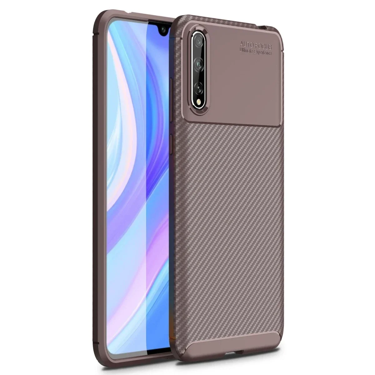 Newface Huawei P Smart S Kılıf Auto Focus Karbon Kapak - Kahverengi