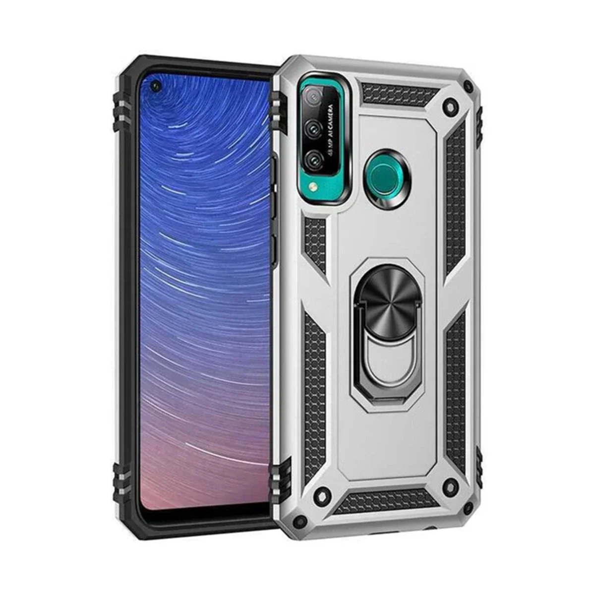 Newface Huawei P40 Lite E Kılıf Sofya Yüzüklü Silikon Kapak - Gümüş