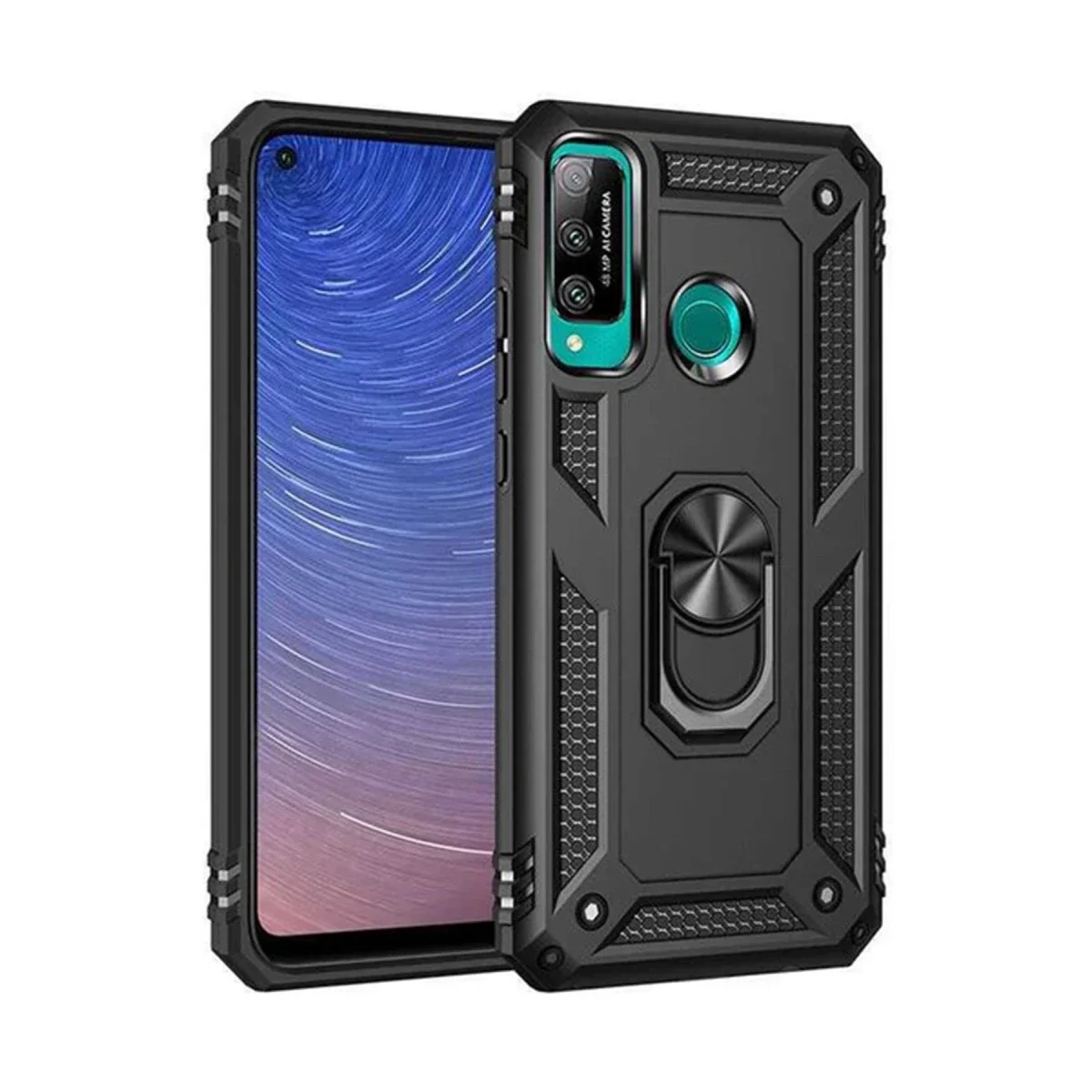 Newface Huawei P40 Lite E Kılıf Sofya Yüzüklü Silikon Kapak - Siyah