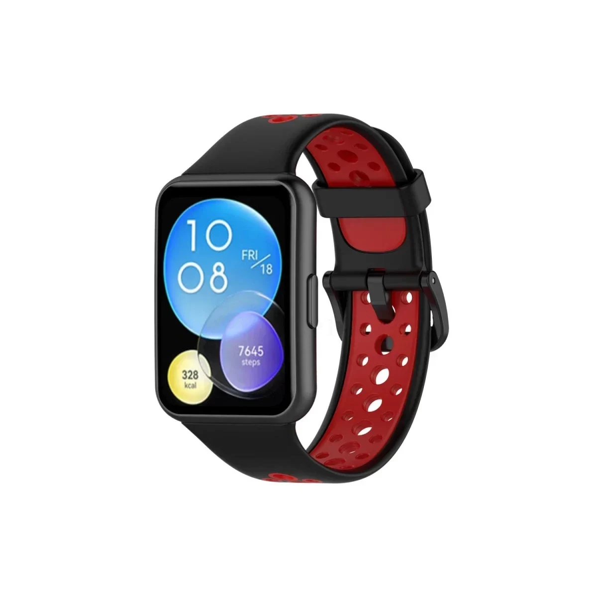 Newface Huawei Watch Fit 2 Spor Delikli Kordon - Siyah-Kırmızı