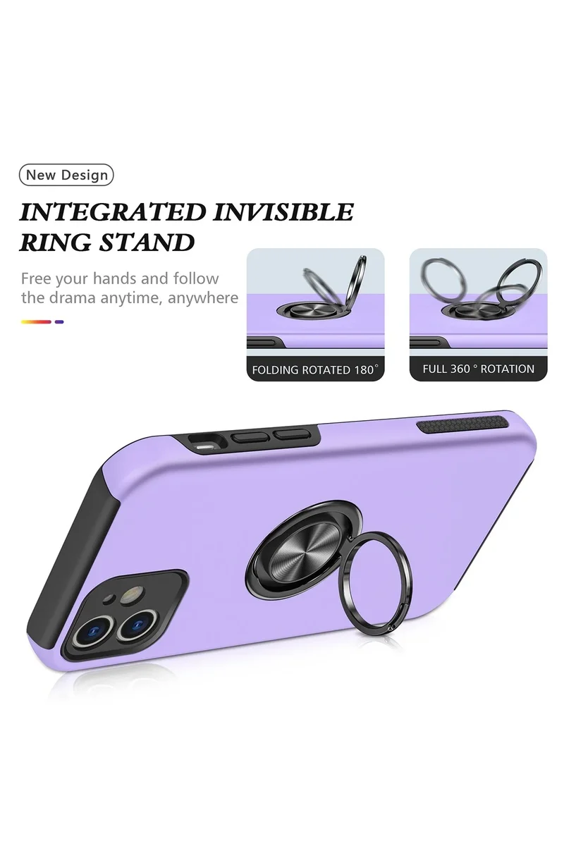Newface iPhone 12 Kılıf Elit Yüzüklü Kapak - Mor