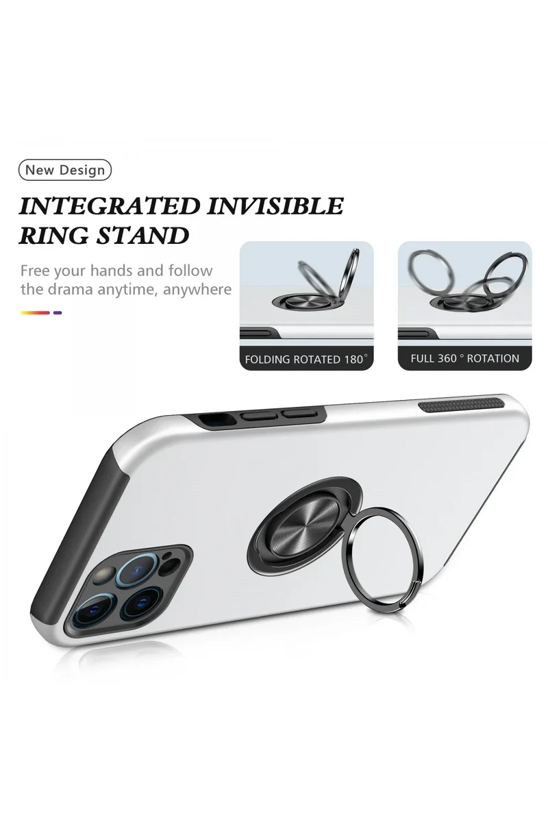 Newface iPhone 12 Pro Kılıf Elit Yüzüklü Kapak - Gümüş