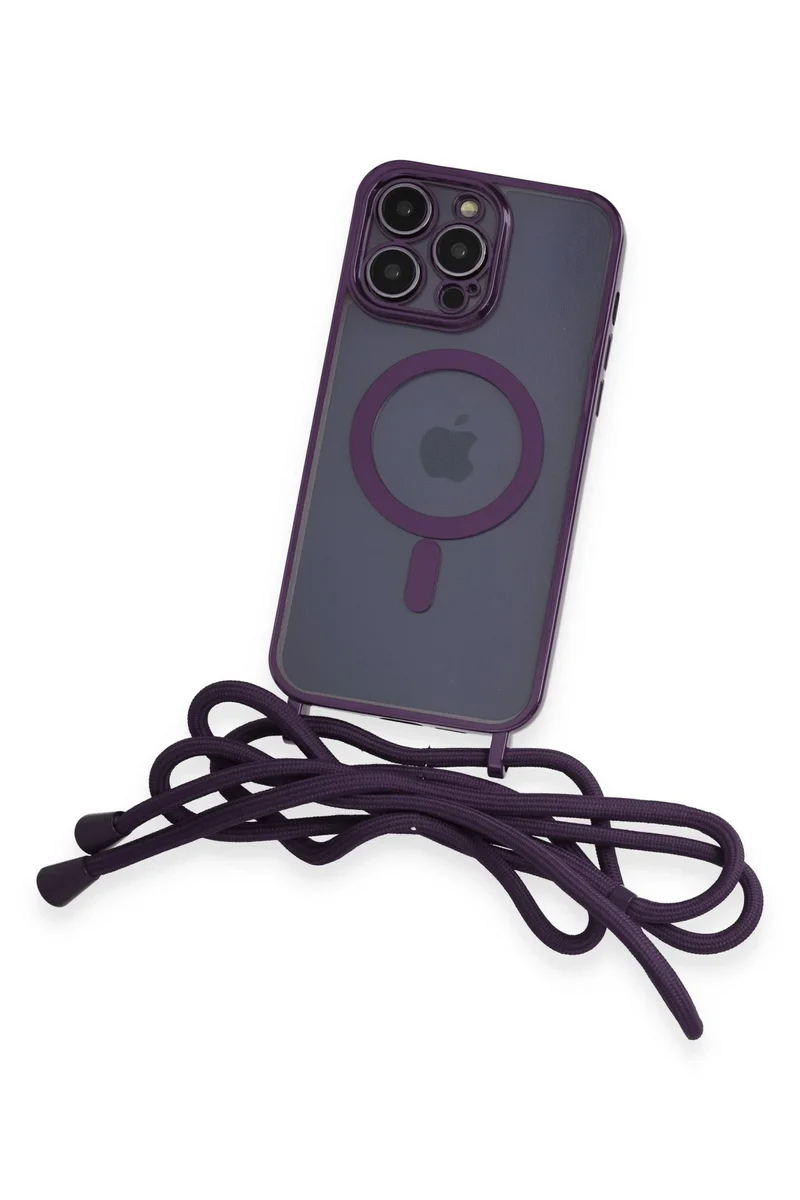Newface iPhone 13 Pro Max Kılıf Divo Lazer Askılı Magsafe Kapak - Derin Mor
