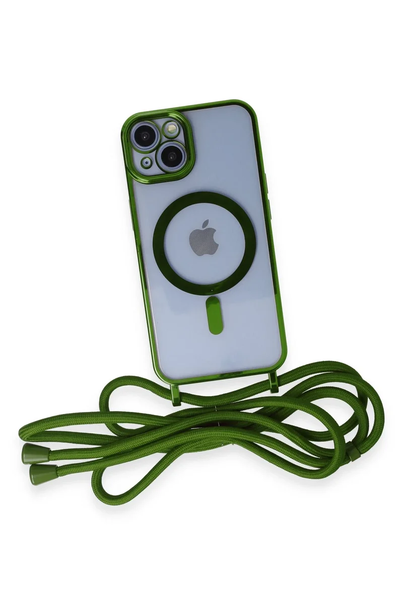 Newface iPhone 14 Kılıf Divo Lazer Askılı Magsafe Kapak - Koyu Yeşil