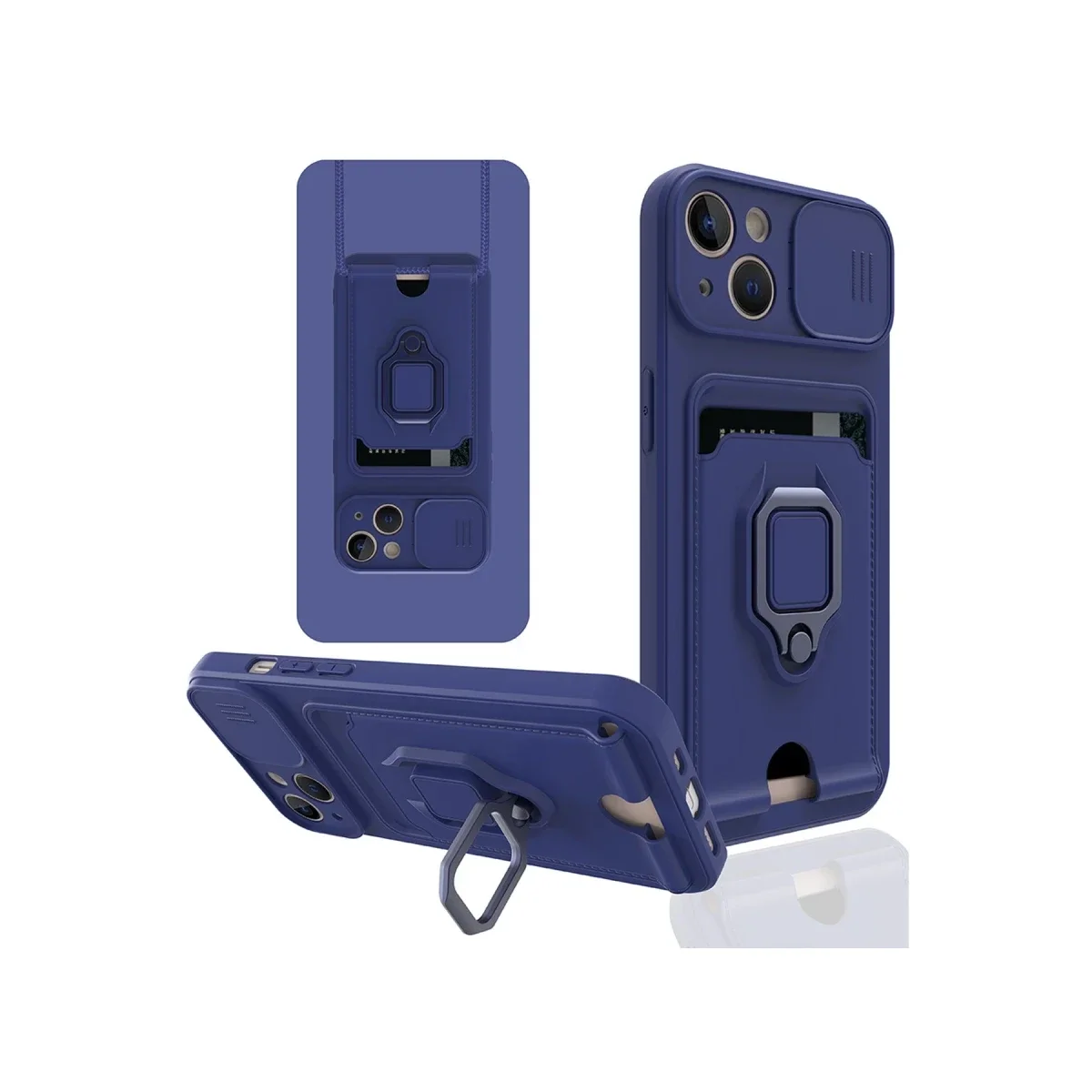 Newface iPhone 14 Kılıf Zuma Kartvizitli Yüzüklü Silikon - Lacivert