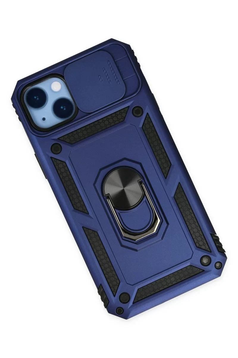 Newface iPhone 14 Plus Kılıf Pars Lens Yüzüklü Silikon - Lacivert