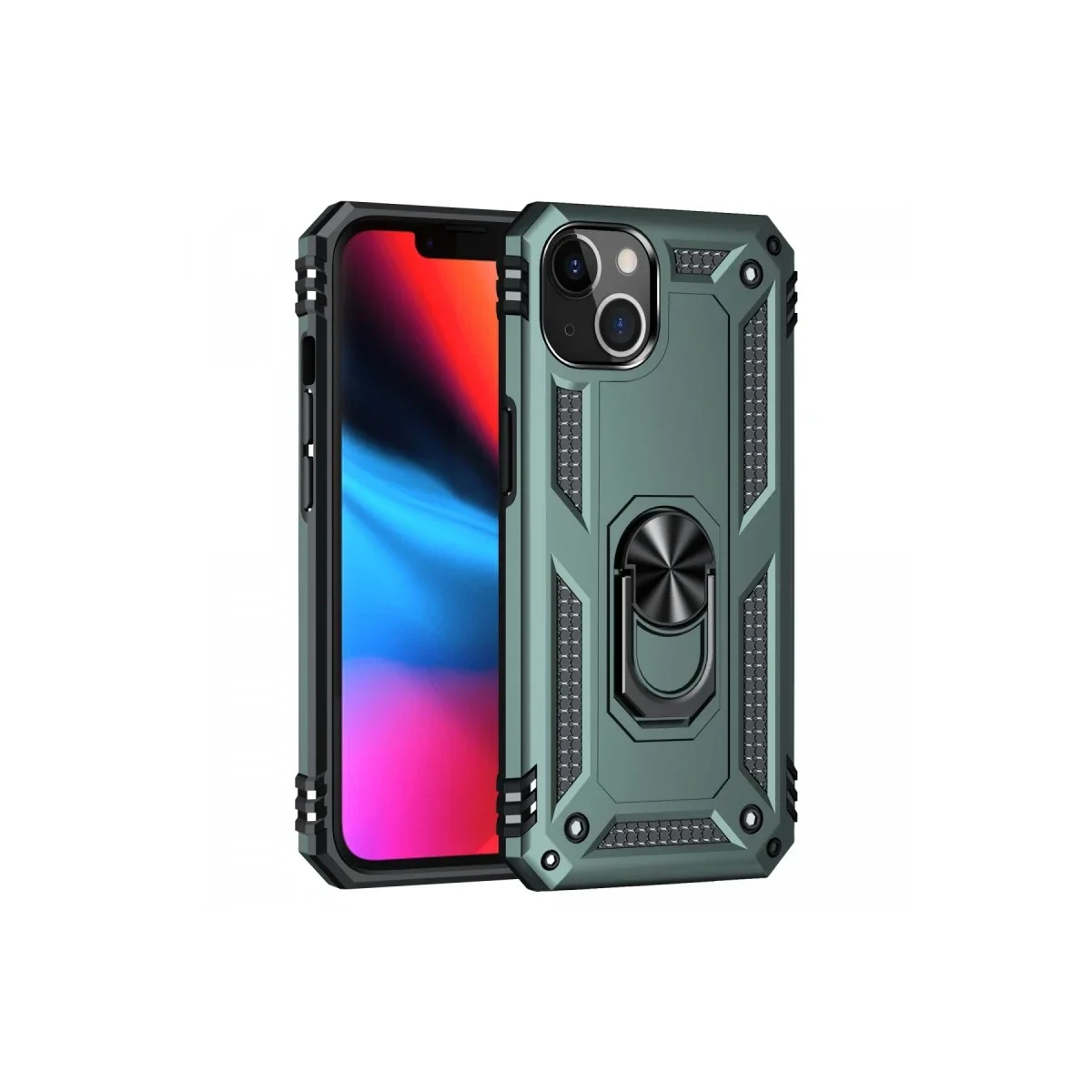 Newface iPhone 14 Plus Kılıf Sofya Yüzüklü Silikon Kapak - Yeşil