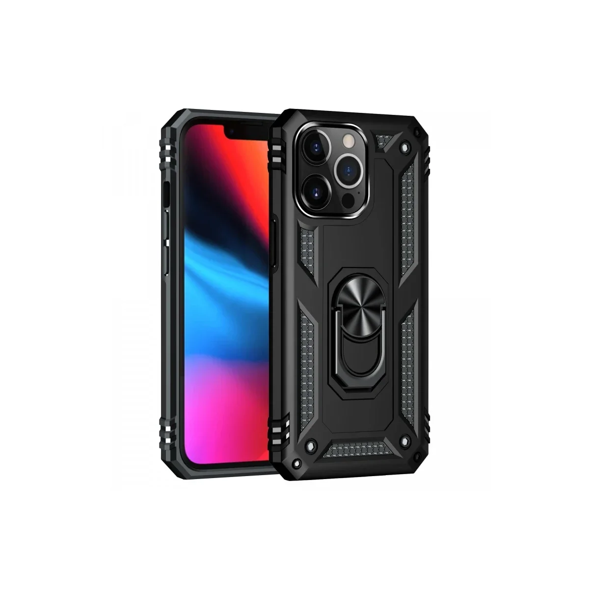 Newface iPhone 14 Pro Max Kılıf Sofya Yüzüklü Silikon Kapak - Siyah