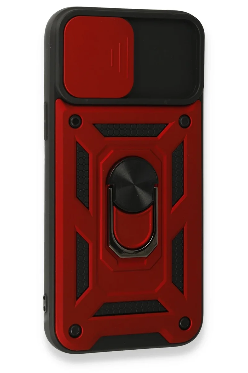 Newface iPhone 15 Pro Kılıf Pars Lens Yüzüklü Silikon - Kırmızı