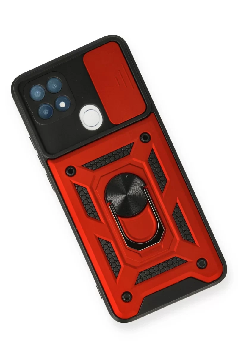Newface Oppo A15 Kılıf Pars Lens Yüzüklü Silikon - Kırmızı