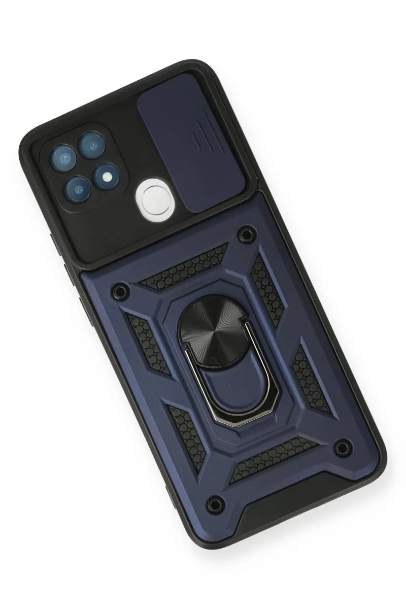 Newface Oppo A15 Kılıf Pars Lens Yüzüklü Silikon - Lacivert