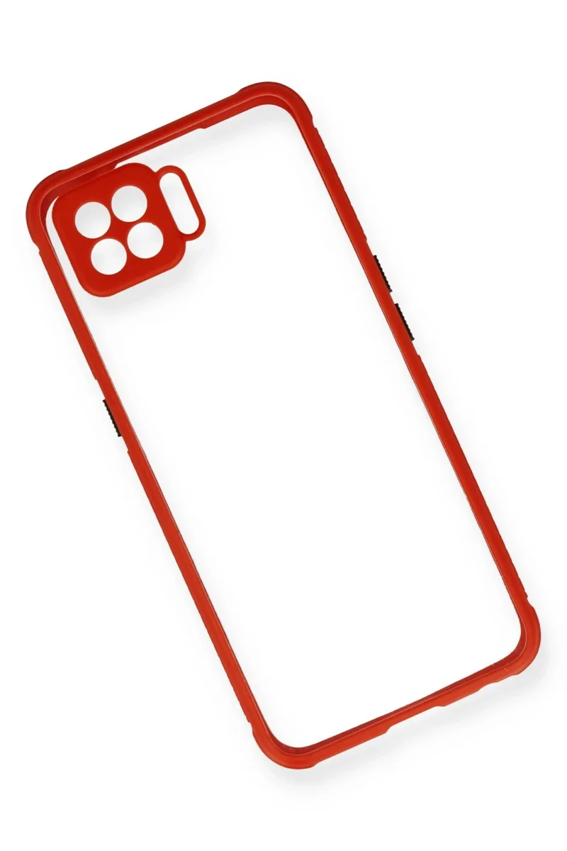 Newface Oppo Reno 4 Lite Kılıf Miami Şeffaf Silikon - Kırmızı