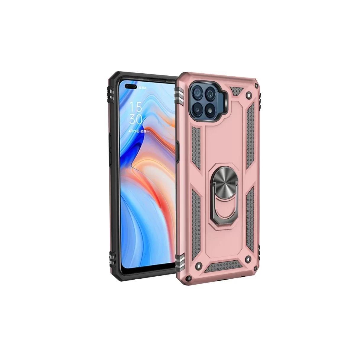 Newface Oppo Reno 4 Lite Kılıf Sofya Yüzüklü Silikon Kapak - Rose