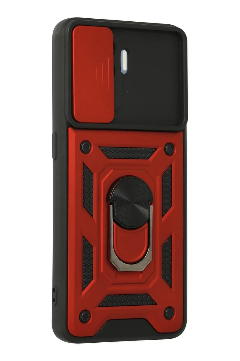 Newface Oppo Reno 5 Lite Kılıf Pars Lens Yüzüklü Silikon - Kırmızı