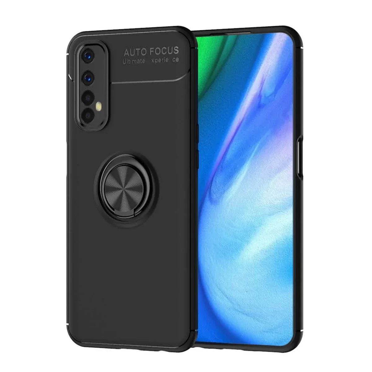 Newface Realme 7 Kılıf Range Yüzüklü Silikon - Siyah
