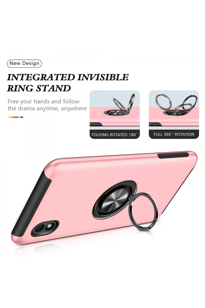 Kapak üzerinde yer alan 360° dönebilen silindir metal yüzük, hem stand işlevi görür hem de mıknatıs özelliği sayesinde araç içi manyetik telefon tutucularla tam uyum sağlar.