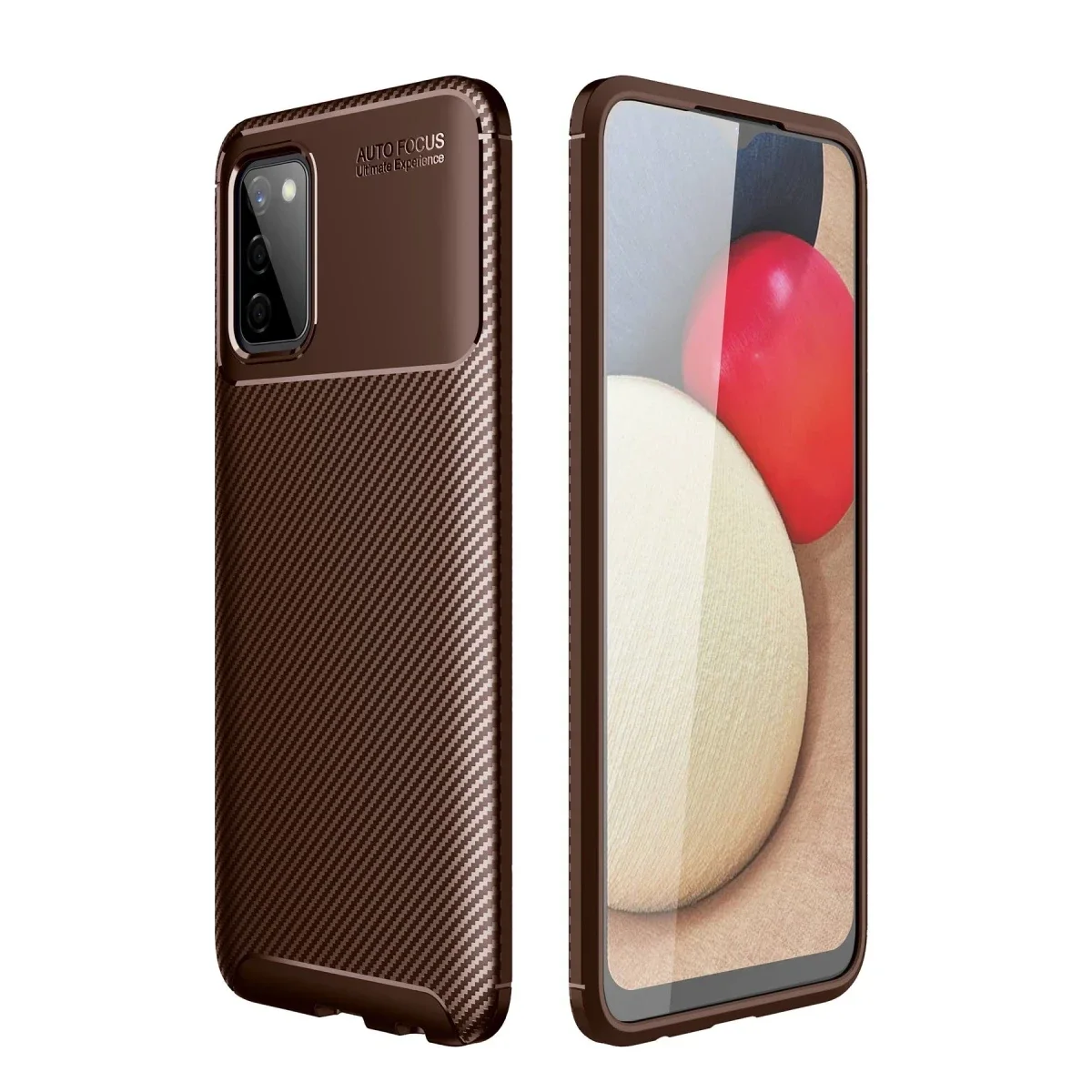 Newface Samsung Galaxy A02S Kılıf Auto Focus Karbon Kapak - Kahverengi