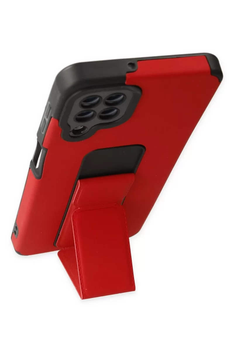 Newface Samsung Galaxy A22 Kılıf Mega Standlı Silikon - Kırmızı