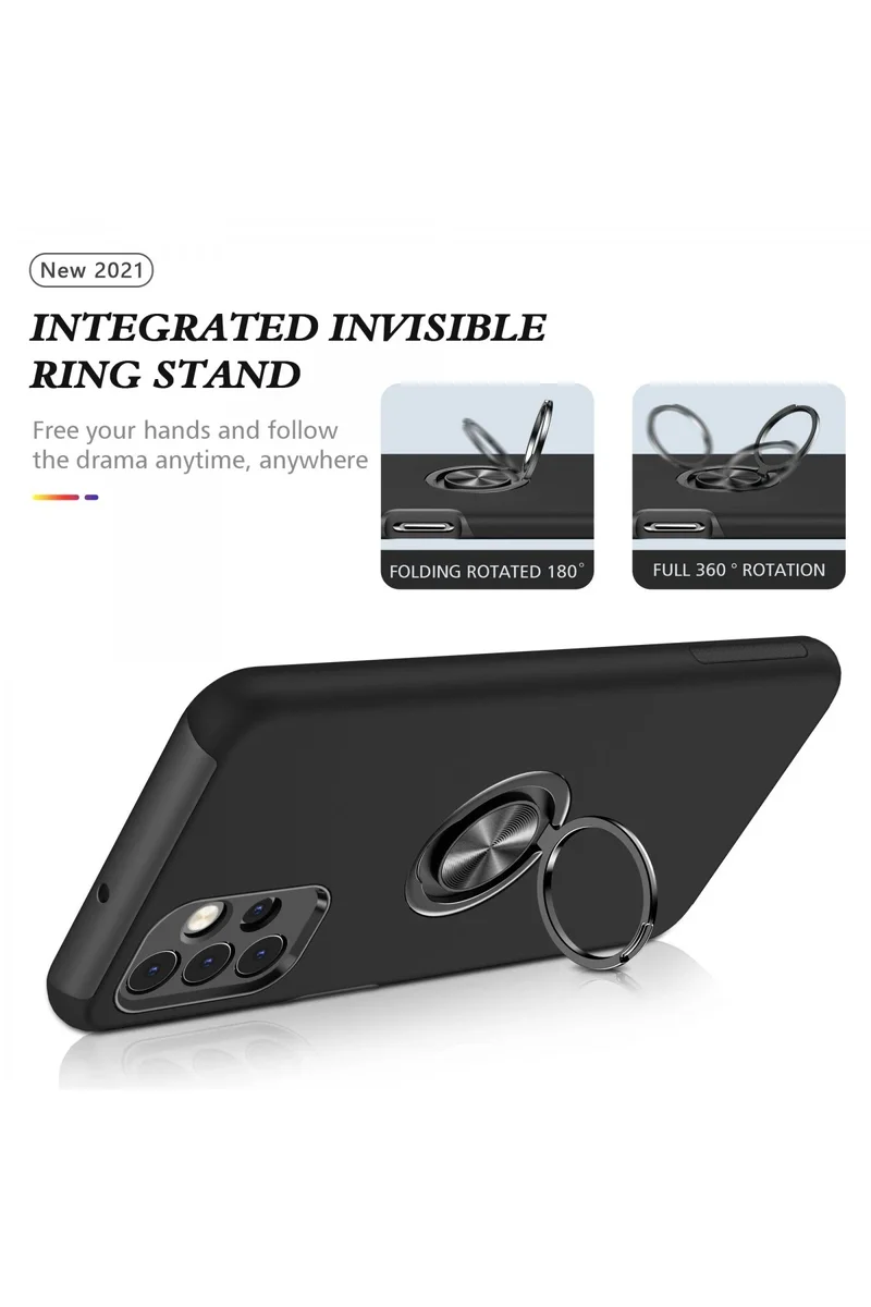 Newface Samsung Galaxy A72 Kılıf Elit Yüzüklü Kapak - Siyah