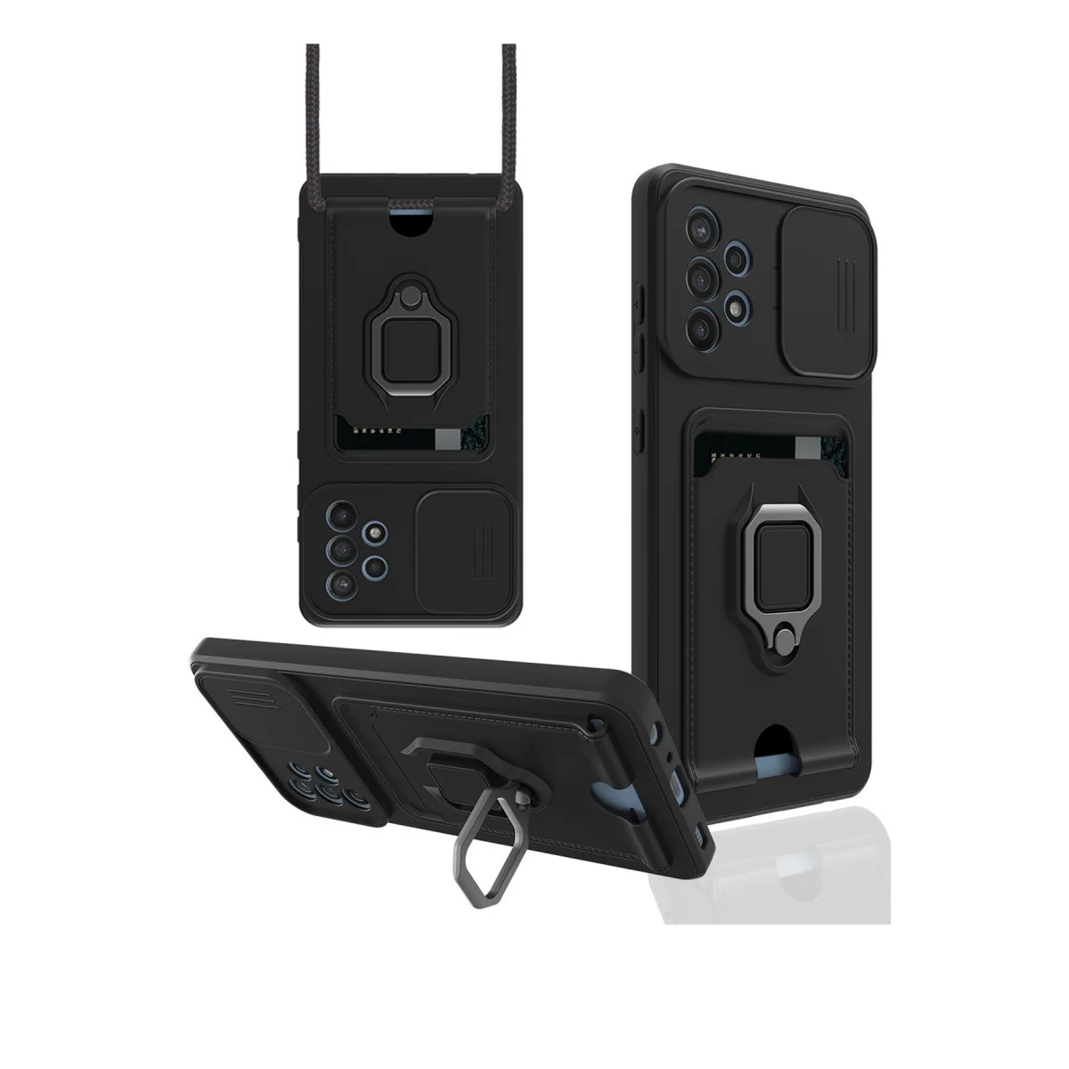 Kart Bölmeli | Kamera Korumalı | Stand Yüzük Destekli | Soft TPU Tasarım