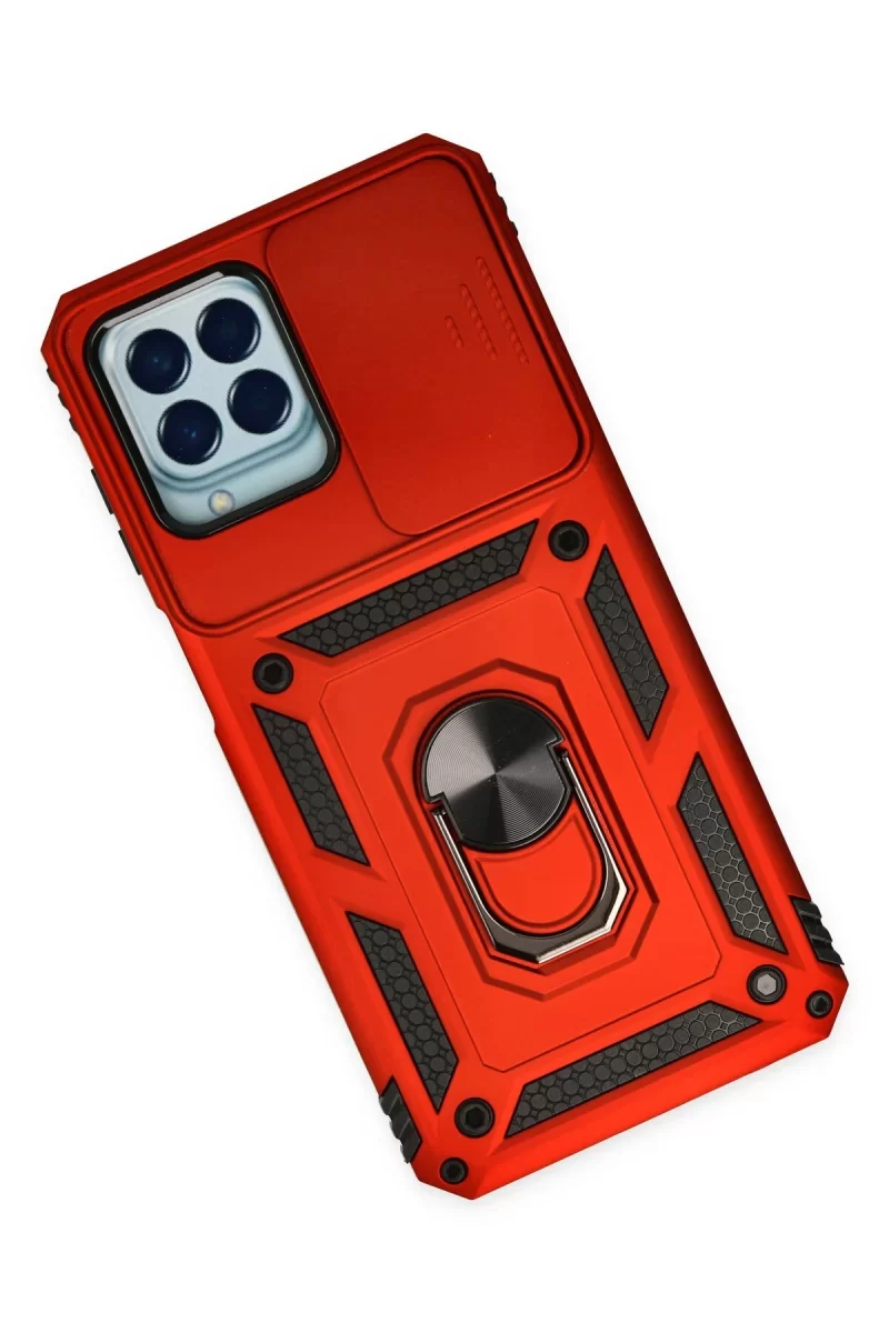 Newface Samsung Galaxy M33 Kılıf Pars Lens Yüzüklü Silikon - Kırmızı
