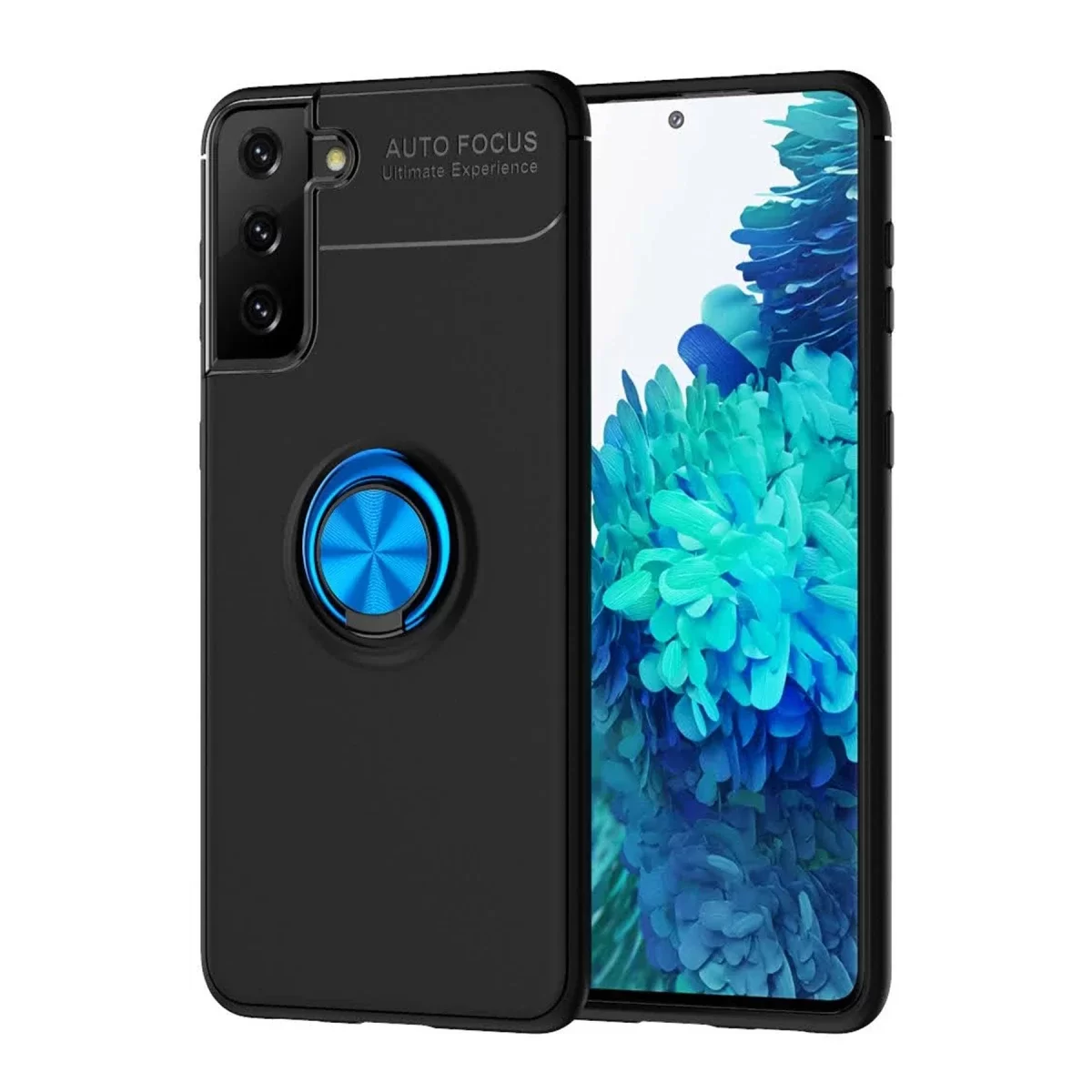 Newface Samsung Galaxy S21 Plus Kılıf Range Yüzüklü Silikon - Siyah-Mavi