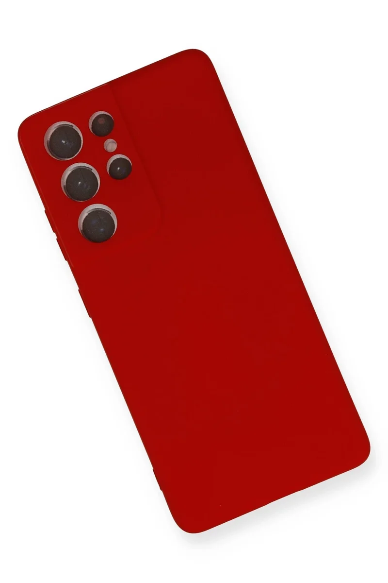 Newface Samsung Galaxy S21 Ultra Kılıf Nano içi Kadife Silikon - Kırmızı