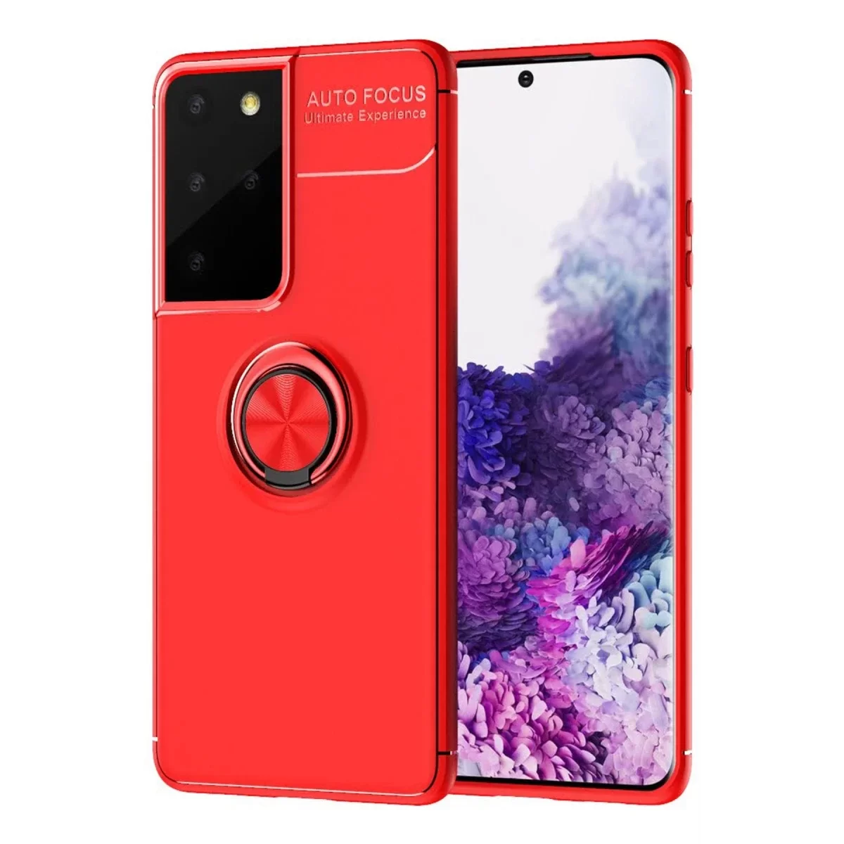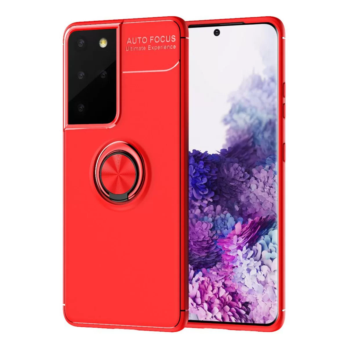 Newface Samsung Galaxy S21 Ultra Kılıf Range Yüzüklü Silikon - Kırmızı