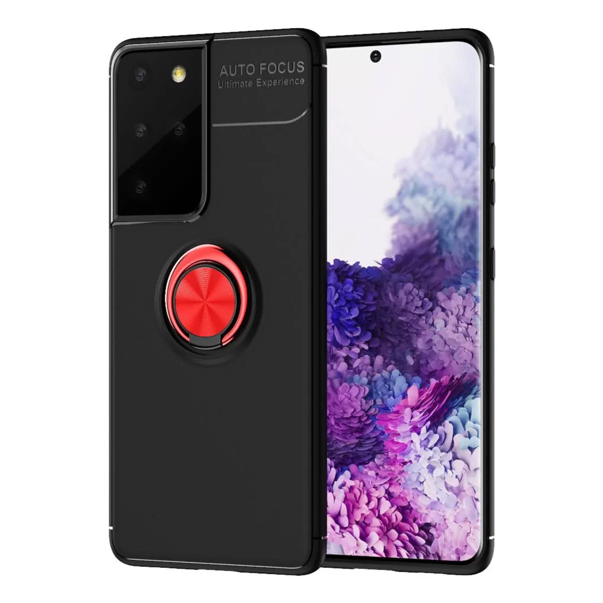 Newface Samsung Galaxy S21 Ultra Kılıf Range Yüzüklü Silikon - Siyah-Kırmızı