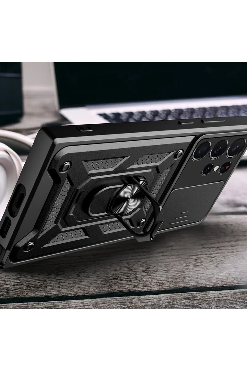 Newface Samsung Galaxy S23 Ultra Kılıf Pars Lens Yüzüklü Silikon - Lacivert