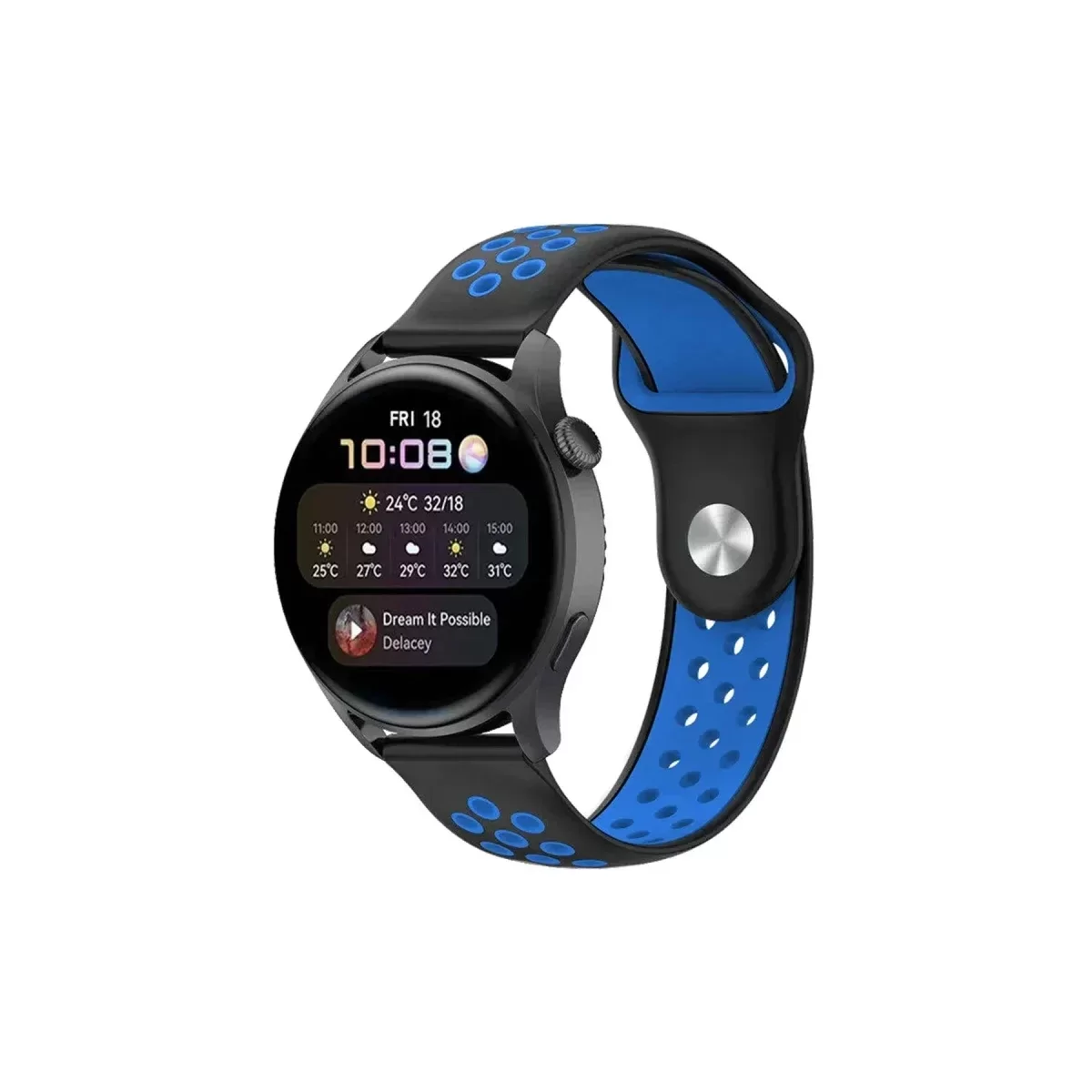 Newface Watch 22mm Spor Delikli Kordon - Siyah-Mavi