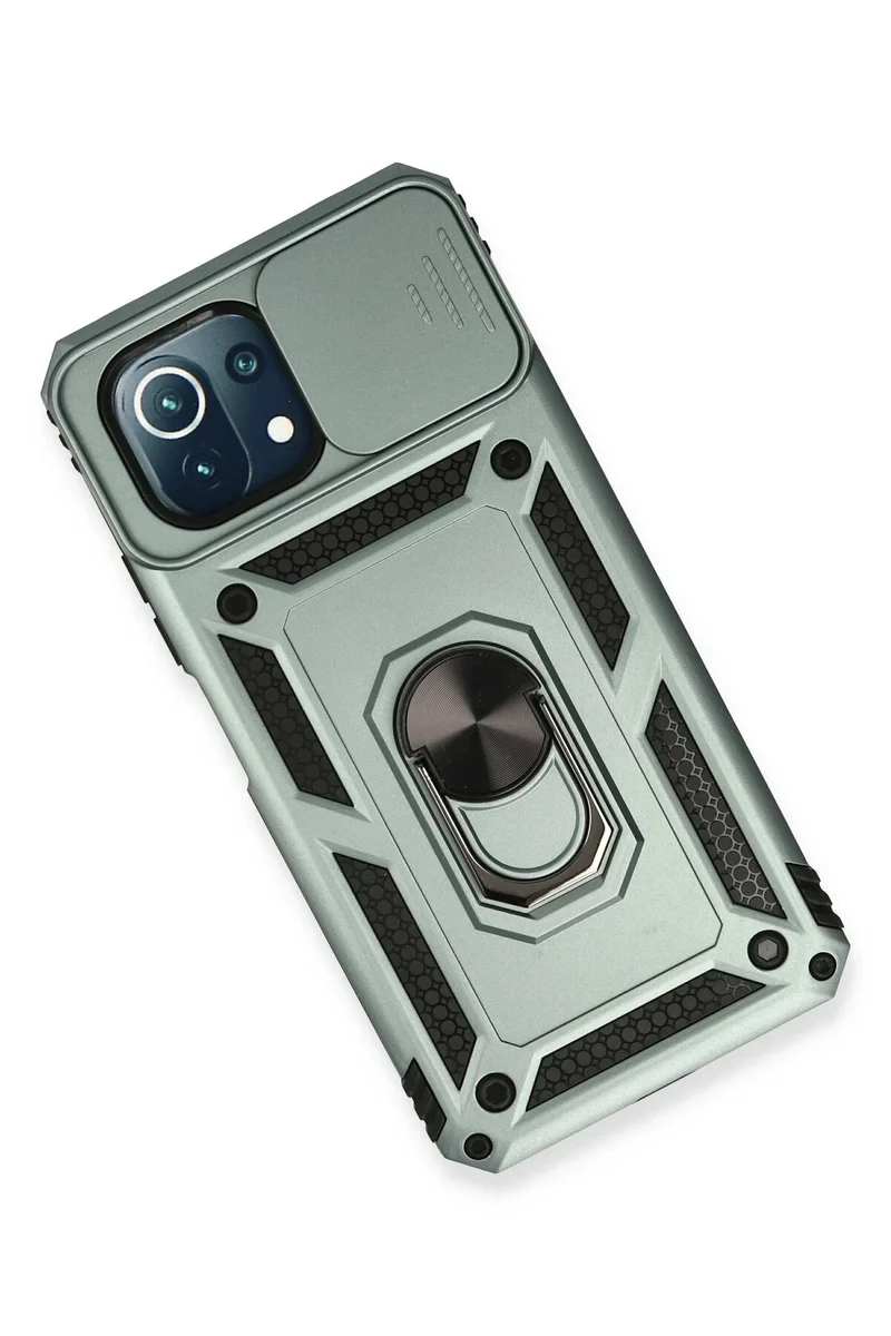 Newface Xiaomi Mİ 11 Lite Kılıf Pars Lens Yüzüklü Silikon - Yeşil