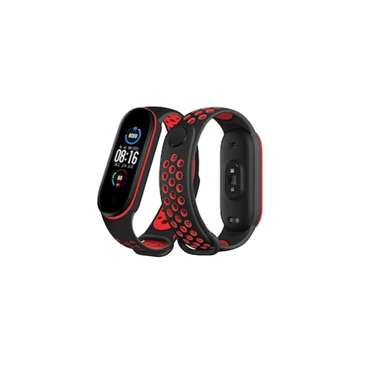 Newface Xiaomi Mi Band 6 Spor Delikli Kordon - Siyah-Kırmızı