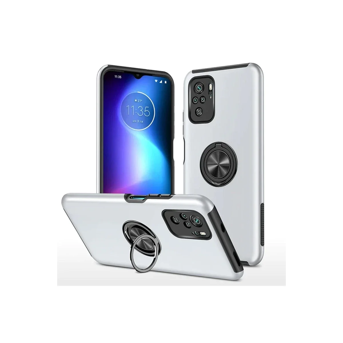 Kapak üzerinde yer alan 360° dönebilen silindir metal yüzük, hem stand işlevi görür hem de mıknatıs özelliği sayesinde araç içi manyetik telefon tutucularla tam uyum sağlar.