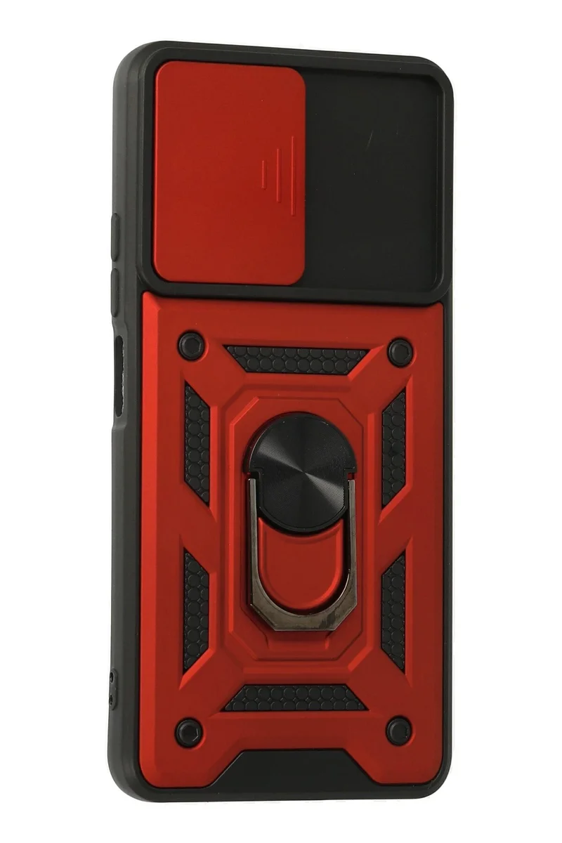 Newface Xiaomi Poco F3 Kılıf Pars Lens Yüzüklü Silikon - Kırmızı