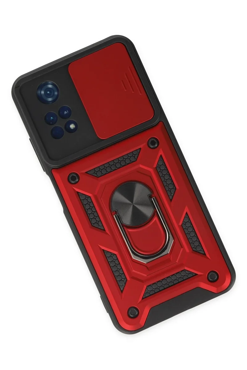 Newface Xiaomi Poco M4 Pro 4G Kılıf Pars Lens Yüzüklü Silikon - Kırmızı
