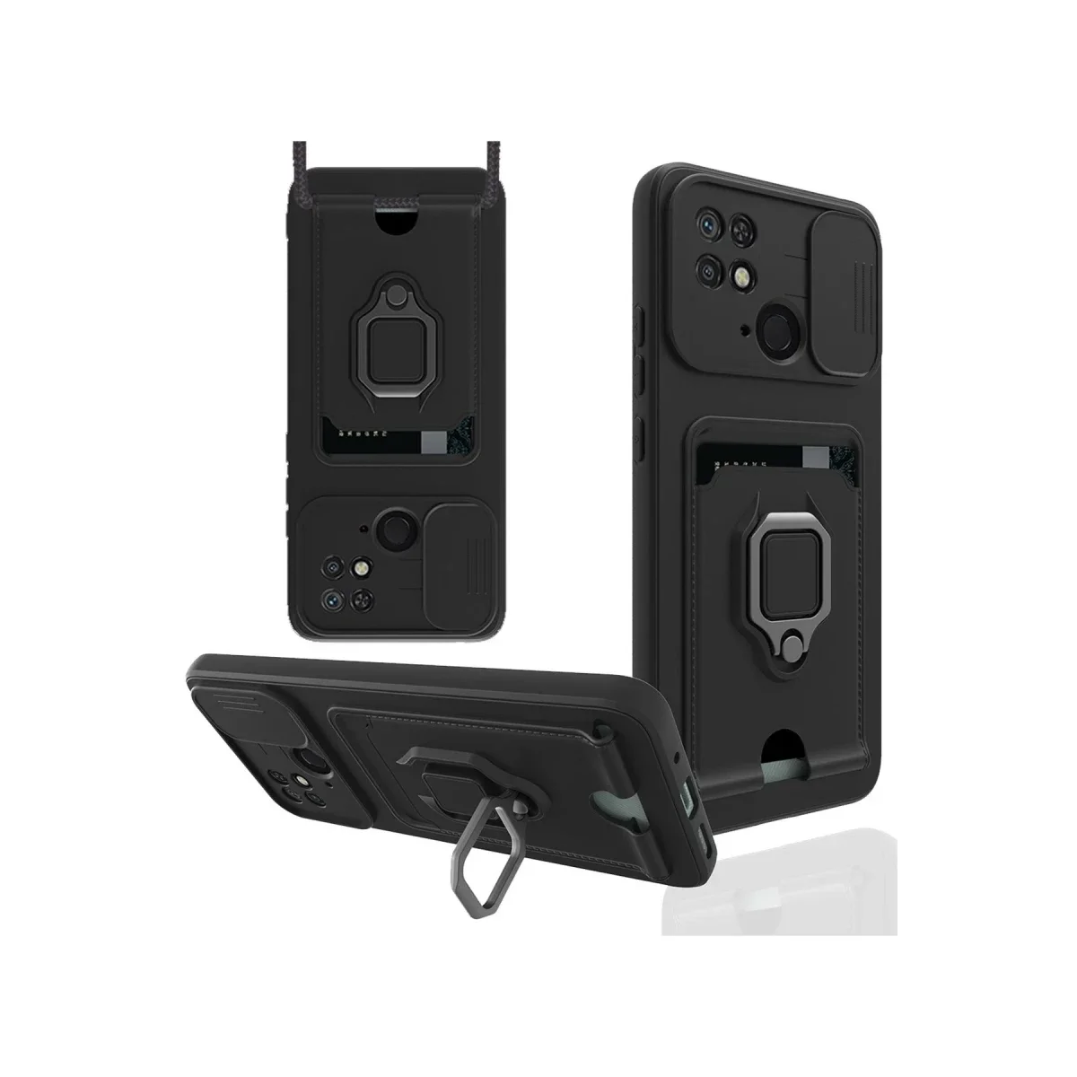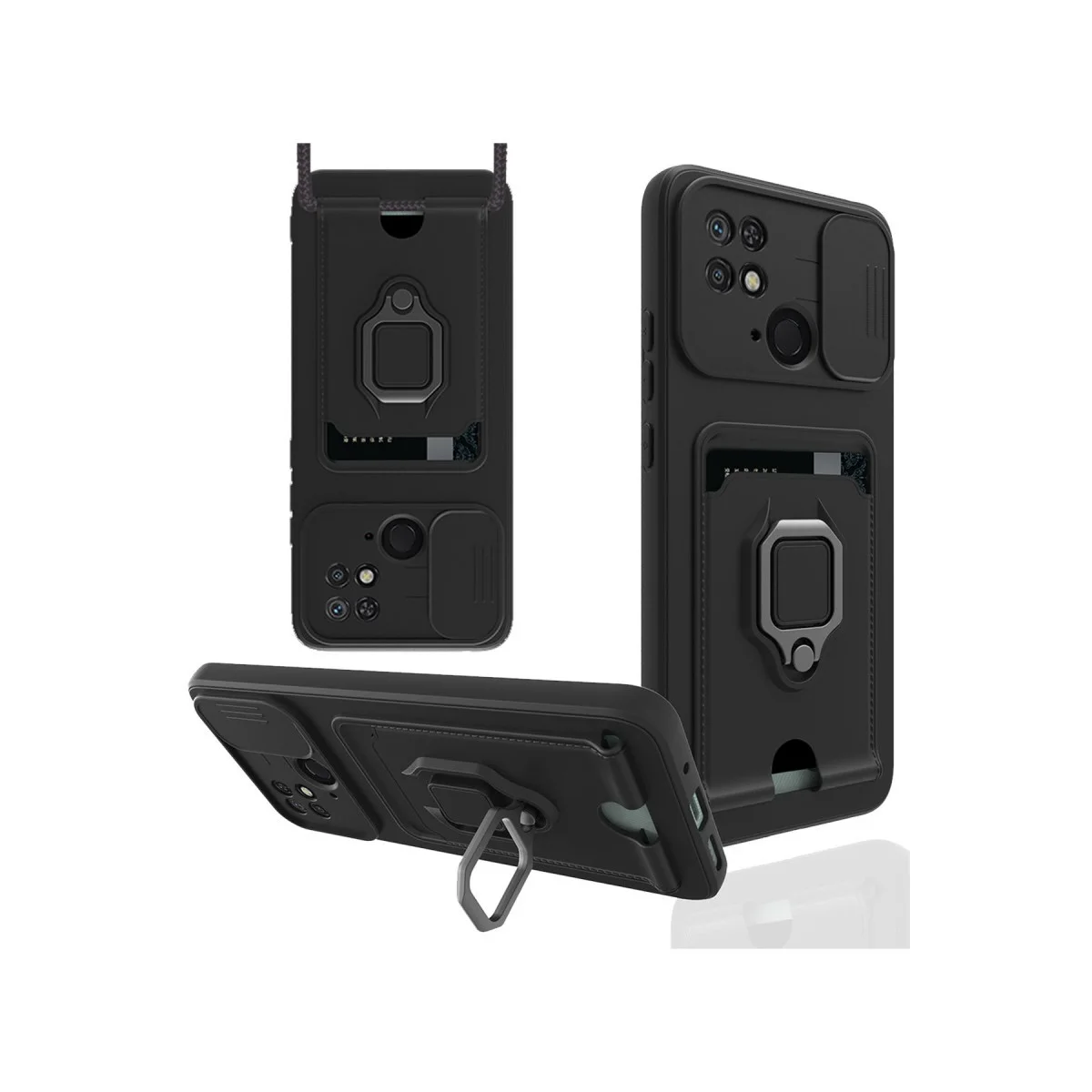 Newface Xiaomi Redmi 10C Kılıf Zuma Kartvizitli Yüzüklü Silikon - Siyah