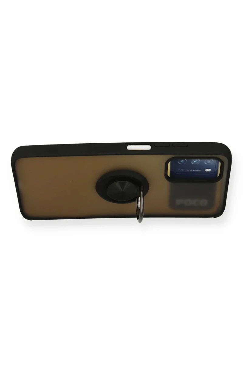 Newface Xiaomi Redmi 9T Kılıf Montreal Yüzüklü Silikon Kapak - Siyah